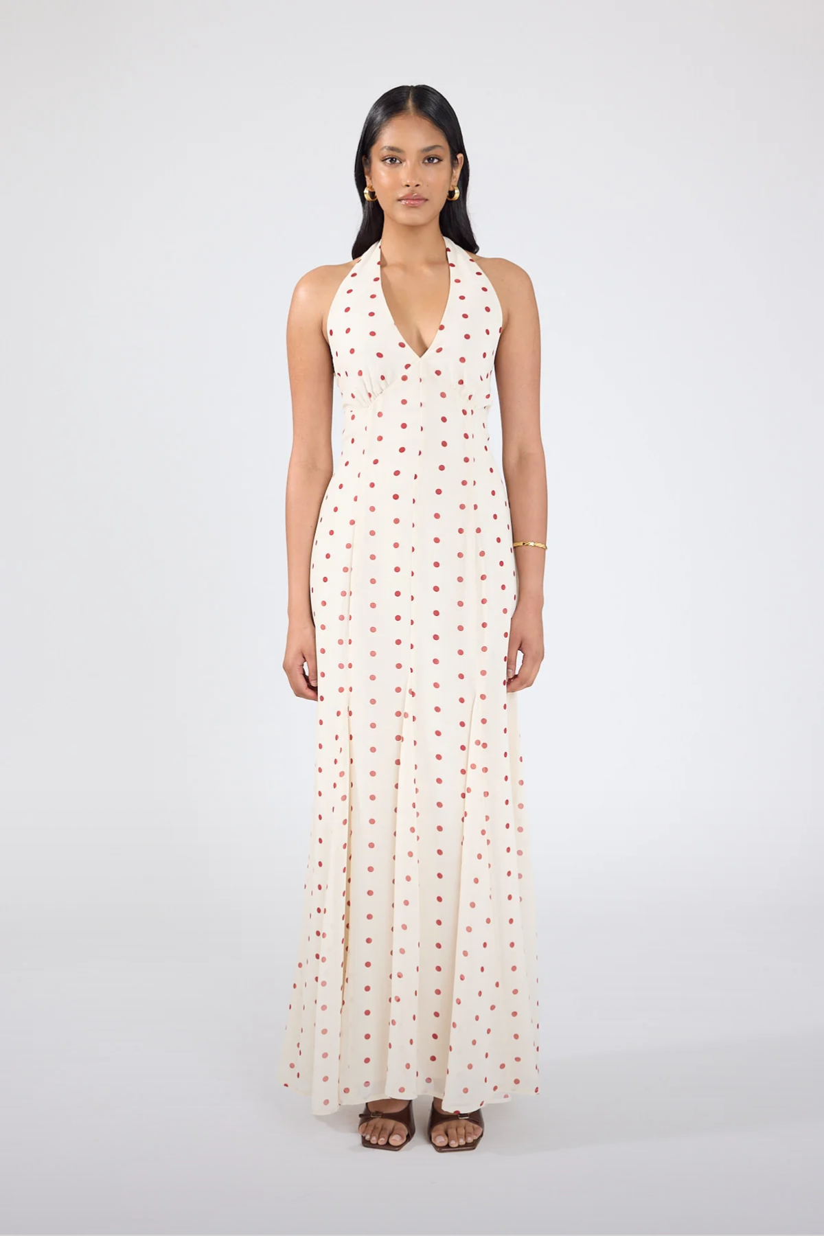 Ivana Halter Chiffon Maxi Dress Cream/Red Polka Dot