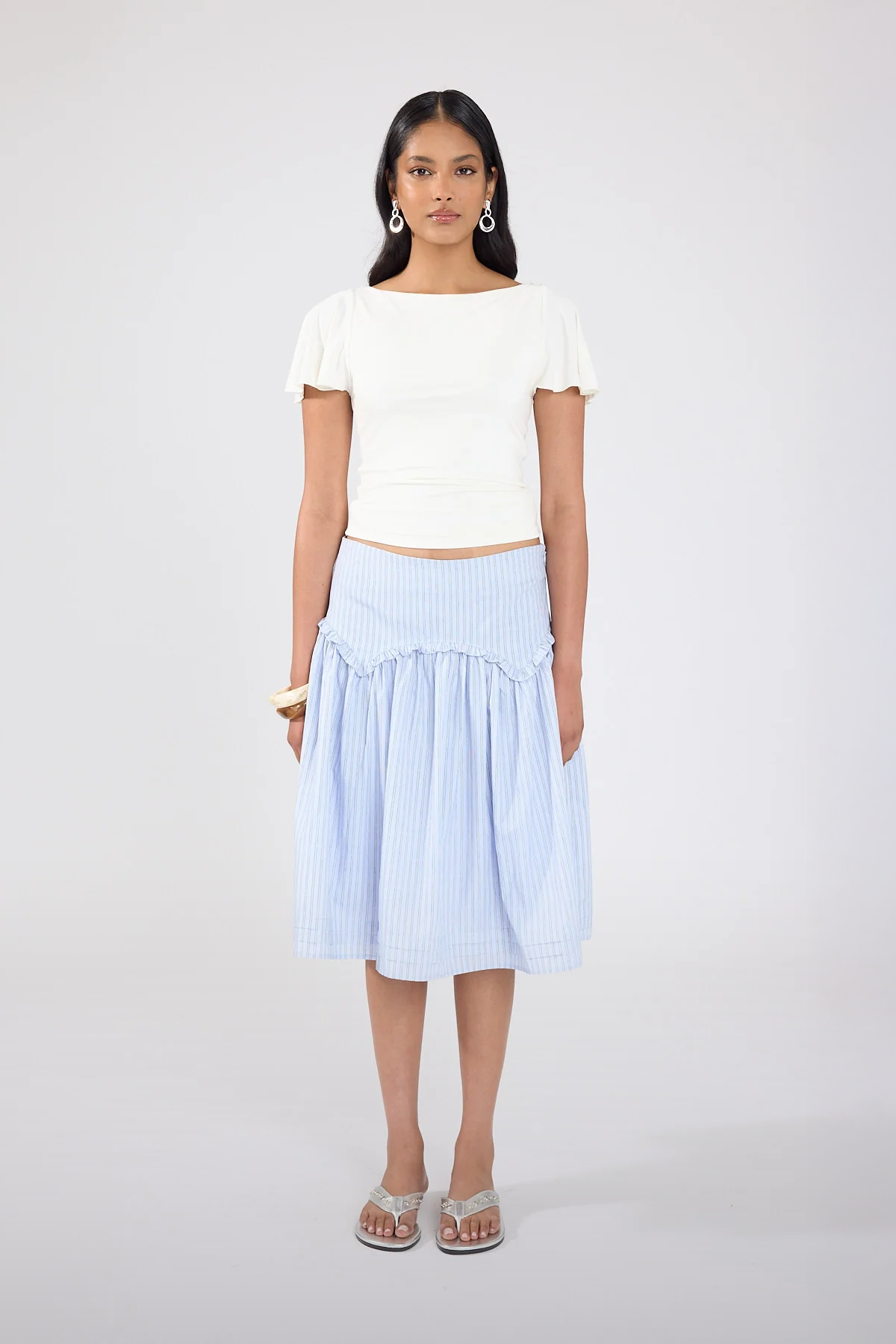 Montel Mid Rise Midi Skirt Blue Stripe