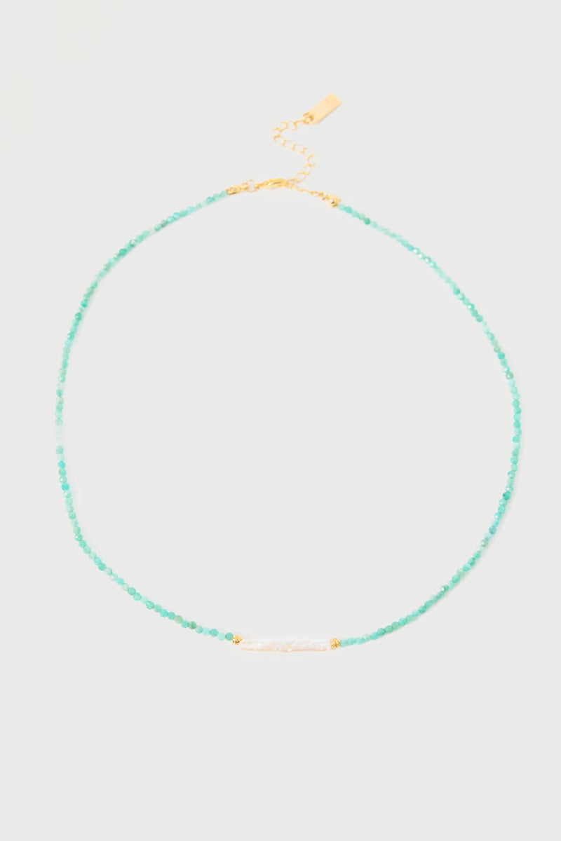 Briella Beaded Pearl Necklace Mint/Pearl