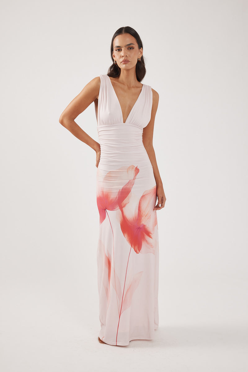 Cassia Flower Maxi Dress Pink Print