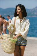 Dawn Crochet Mini Shorts Green/Blue Stripe