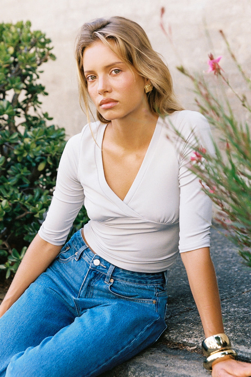 Mara V-Neck 3/4 Sleeve T-Shirt Grey