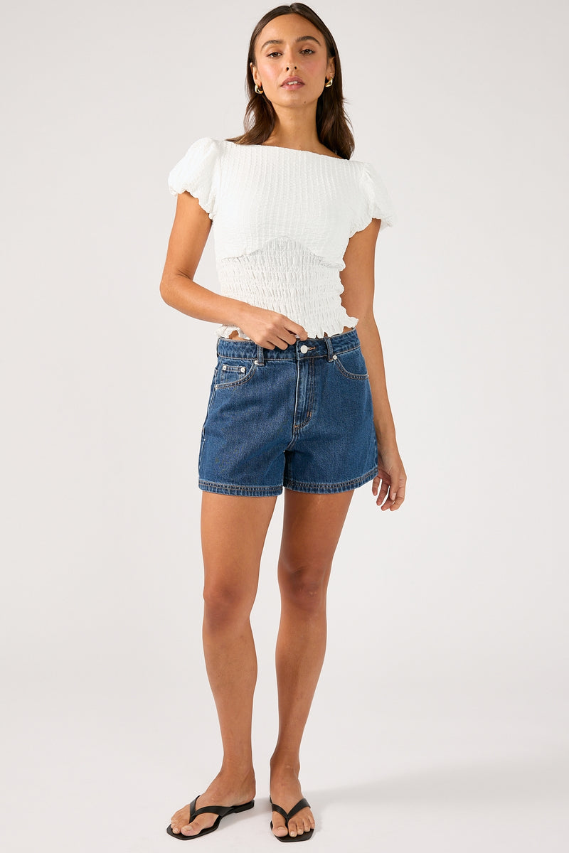 Mid Rise 90's Slouch Denim Short Dark Blue Denim